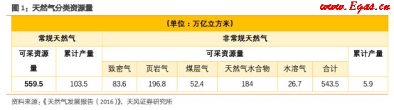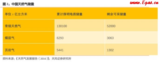 截至2015年底,全國累計探明常規(guī)天然氣地質儲量13.01萬億立方米,剩余可采儲量5.2萬億立方米;累計探明煤層氣地質儲量6293億立方米,剩余可采儲量3063億立方米;累計探明頁巖氣地質儲量5441億立方米,剩余可采儲量1302億立方米。