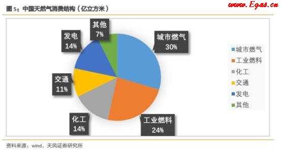 居民天然氣消費擁有很大的潛力,因為目前只有小部分城市居民可使用天然氣。根據(jù)國家統(tǒng)計局數(shù)據(jù),中國不到20%的人口可使用管道天然氣,而美國的這一數(shù)字達58%。隨著可支配收入和生活水平的提高,越來越多的居民出于便利性和清潔性而傾向于使用管道天然氣。