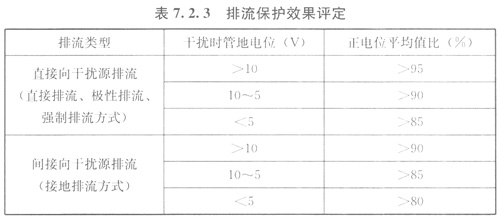 4當排流效果達不到上列3款要求時,可采用正電位平均值比指標進行評定。排流保護效果評定結果應滿足表7.2.3指標要求。