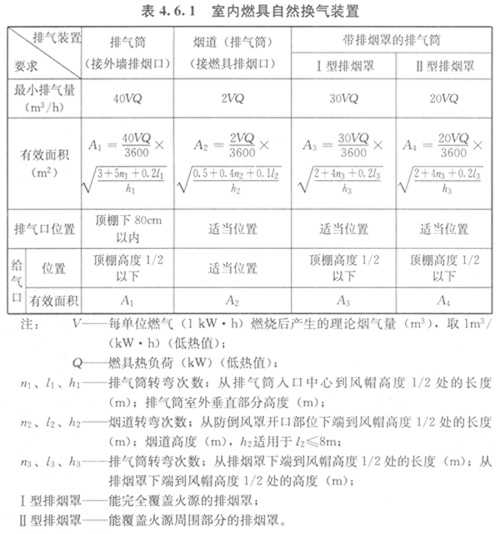 4.6.1室內(nèi)燃具自然換氣裝置應符合表4.6.1的規(guī)定。