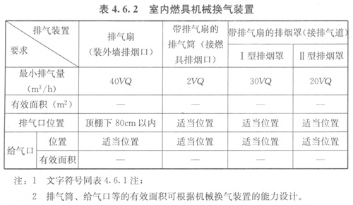 4.6.2室內(nèi)燃具機械換氣裝置應符合表4.6.2的規(guī)定。