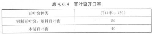 a——百葉窗的開口率,可按表4.6.4取值;