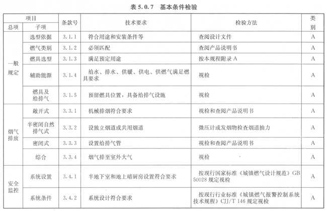5.0.7燃具基本條件應按表5.0.7的規(guī)定進行檢驗。