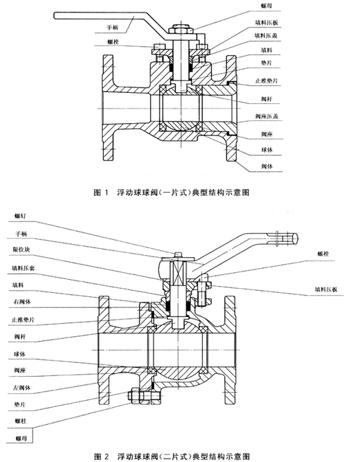 4.1 浮動(dòng)球球閥(一片式)的典型結(jié)構(gòu)如圖1所示。