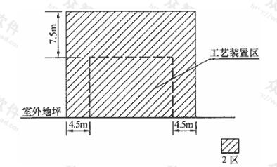 工藝裝置區(qū)邊緣外4.5m內,放散管管口(或最高的裝置)以上7.5m內范圍為2區(qū)。