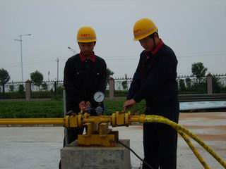 (圖十二)打開(kāi)放氣閥門將高壓軟管內(nèi)的壓力泄掉,拆去高壓軟管及靜電接地線,使槽車盡快離開(kāi)罐區(qū)。