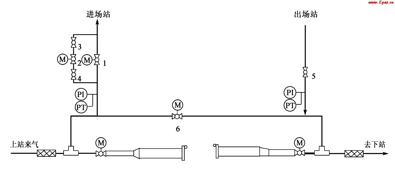 (2)當場站內(nèi)不帶壓時,按站場開氣進行操作;關(guān)閉閥6。
