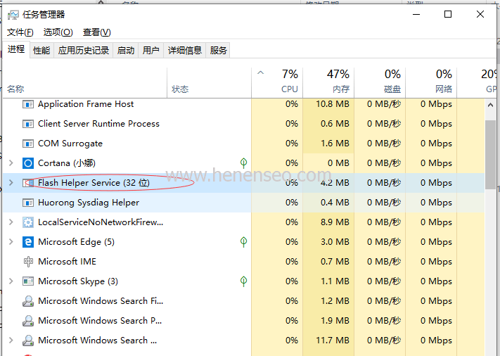 今天教大家直接刪除這個(gè)廣告。 等下次彈出來的時(shí)候,鍵盤快捷鍵Ctrl+Shift+Esc打開任務(wù)欄管理器,找到FlashHelperService.exe這個(gè)進(jìn)程,右鍵結(jié)束進(jìn)程。