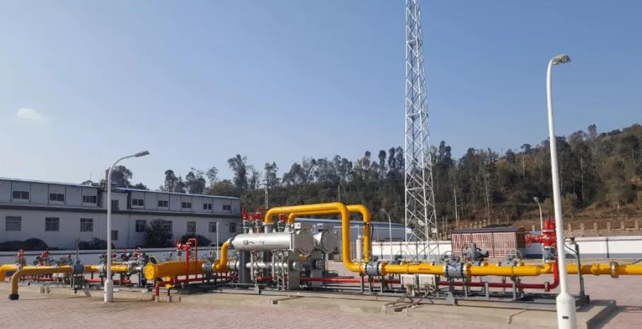 4. 置換管道內(nèi)氣體。(打開調(diào)壓裝置上游總閥,緩慢打開調(diào)壓裝置的進(jìn)口球閥,再打開之后的截止閥,最后打開出口球閥,在下游管網(wǎng)末端找一個(gè)放空口,直到管網(wǎng)內(nèi)空氣被排完,注意控制氣體的流速。)