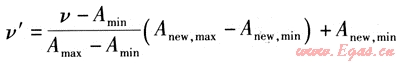 該方法是對初始數(shù)據(jù)進(jìn)行的一種線性轉(zhuǎn)換。它是將屬性A的一個值v映射為v′且有v′∈[Anew,min,Anew,max],具體映射計算式為: