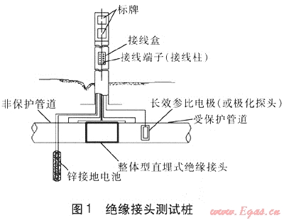 絕緣接頭是對陰極保護管道與非保護管道進行電絕緣的部件,絕緣接頭絕緣性能對燃氣管道陰極保護系統(tǒng)正常運行有較大影響,可以說,沒有絕緣就沒有陰極保護。為保證絕緣接頭絕緣性能良好,絕緣接頭產品檢驗及陰極保護系統(tǒng)運行時的定期檢查都需要對絕緣接頭的絕緣性能進行測試。