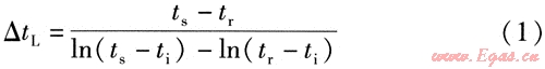 對(duì)流散熱器對(duì)數(shù)平均傳熱溫差出△tL的計(jì)算式為[6]: