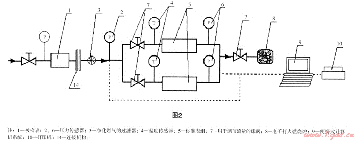 根據(jù)實(shí)際工作情況,并參考國外經(jīng)驗(yàn),選用一臺或一組標(biāo)準(zhǔn)表及其它配套設(shè)備,設(shè)計適合于大流量燃?xì)獗碓诰€實(shí)流檢測的標(biāo)準(zhǔn)裝置。