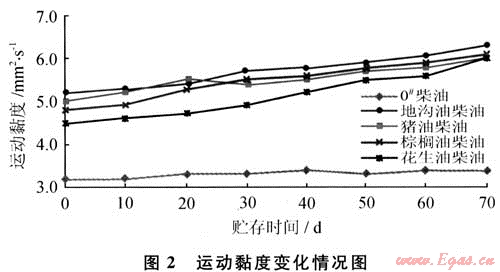 1) 生物柴油的穩(wěn)定性能略差于礦物柴油的穩(wěn)定性能,在以不同原料制備的生物柴油中,以地溝油為原料制備的生物柴油,貯存穩(wěn)定性最差。