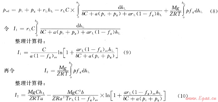 Hasan-Kabir根據Godbey-Dimon、Podio等人的氣體空隙度(含氣率)相關式推導了井底流壓的解析解表達式。即