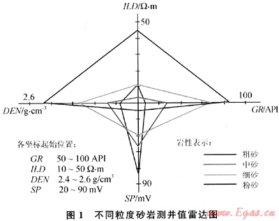 以往的巖性和沉積環(huán)境的研究工作[1~2]都是主要通過巖心觀察或者綜合分析巖屑錄井資料,但取心及巖屑錄井資料都有限。而事實(shí)上,每口井的各種測井資料所提供的豐富的地質(zhì)信息并未得到充分的利用,高效利用測井資料中豐富地質(zhì)信息已成為沉積相的研究工作從定性解釋向定量解釋發(fā)展的方向了。近年來,于民鳳等[3]通過蜘蛛網(wǎng)圖和梯形圖的方法,展示了不同沉積相的特征;唐洪等[4]應(yīng)用直方圖或頻率交會(huì)圖等方法,從測井相等展示了不同沉積相的特征;嚴(yán)科等[5]實(shí)現(xiàn)了沉積微相的人機(jī)交互識(shí)別,應(yīng)用Bayes統(tǒng)計(jì)方法,建立測井相-沉積微相線性判別模型,取得了明顯的成效。