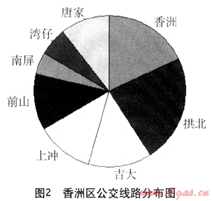 珠海市公交線路主要由珠海市公共汽車公司及珠海信禾西部公共汽車有限公司兩家公司經營。珠海市公共汽車公司公交線路共有59條,車輛1000多臺。其中在香洲區(qū)內行駛的線路有48條,其余11條線路連接香洲區(qū)與另外兩市轄區(qū);珠海信禾西部公共汽車有限公司共有公交線路45條,車輛350多臺,主要營運在斗門區(qū)、金灣區(qū)兩區(qū),其中約40%的線路用于連接香洲區(qū)與另外兩市轄區(qū)。綜合上述數據可見,珠海市超過80%的公交線路營運或經過香洲區(qū)。香洲區(qū)的公交線路主要集中于香洲、拱北、吉大、上沖、前山、灣仔、唐家及南屏,具體分布詳見圖2。