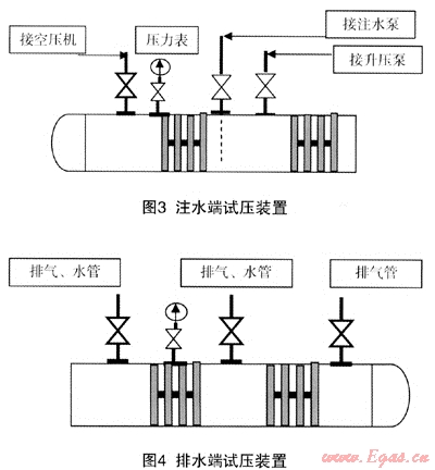 在使用清管、試壓裝置前,要完成清管、試壓裝置的各種部件的安裝,然后對清管、試壓裝置進行壓力試驗,試驗壓力為管道最大試驗壓力的1.25倍,穩(wěn)壓1h合格后,方可與試壓段管道連接。