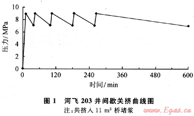 河飛203井間歇關(guān)擠承壓堵漏壓力變化曲線見圖1。