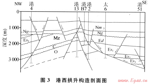1) 由于港西發(fā)育淺層披覆構(gòu)造,形成披覆背斜,而對(duì)于圈閉條件來說,背斜圈閉的封閉性是最好的。