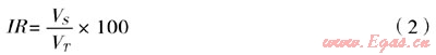 在埋地管道陰極保護電位差中,VI是外加陰極保護電壓中真正起到保護管道作用的一部分電壓,VS是為克服土壤阻抗而損失的電壓,對于保護管道并沒有作用,所以,要獲得較好的陰極保護效果,VI應(yīng)較大而VS較小,陰極保護的水平可以用VI的大小來衡量。然而,在實際的檢測中很難對VI進行測量,而較容易測量VS的值,因此,可以利用VS值的大小來評價陰極保護的作用,通常是利用其占埋地管道外加陰極保護電位差的百分比進行表示,公式如下: