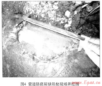 開挖發(fā)現(xiàn)此處出現(xiàn)4×3cm的防腐層破損