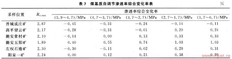 5) 隨著煤級(jí)的逐漸增加,煤基質(zhì)自調(diào)節(jié)滲透率綜合變化率呈負(fù)對(duì)數(shù)模式降低,反映了低中煤級(jí)煤比高煤級(jí)煤具有較高的煤層氣開(kāi)發(fā)潛勢(shì)。