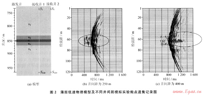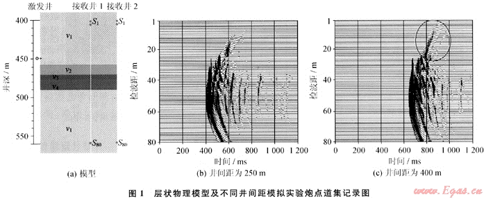 從應(yīng)用的角度看,井間距越大所研究的井間介質(zhì)橫向范圍越大,因此井距越大越好。從理論上來講,井間距越大地震波傳播的路徑越長,能量穿過介質(zhì)被吸收衰減得越多,對井下震源的要求也越高,實(shí)現(xiàn)起來越困難。