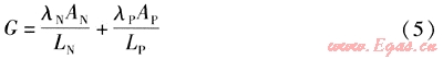 式中LN、LP——N型、P型半導(dǎo)體的長(zhǎng)度,m