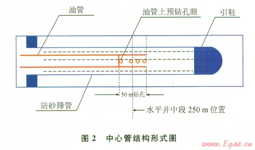 東方l-1氣田在開(kāi)發(fā)時(shí)采用優(yōu)化篩管、盲管長(zhǎng)度比例以及位置關(guān)系對(duì)水平井各段予以均衡。經(jīng)過(guò)研究,東方l-1氣田采用伸進(jìn)篩管中的油管(圖2),尾段