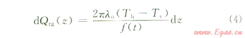 根據(jù)能量守恒定律:dz上流體損失的熱量為: