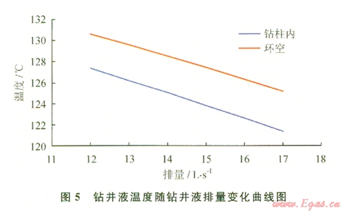 由圖5可知,當鉆井液排量增加時,鉆井液溫度隨之降低。