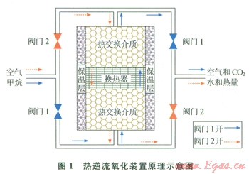 熱逆流氧化裝置原理如圖l所示,裝置啟動時,由電加熱元件將氧化床預熱,使中央溫度達到點火溫度(