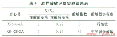 2 儲(chǔ)層酸敏評(píng)價(jià)實(shí)驗(yàn)