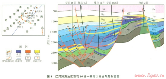 遼河灘海地區(qū)主要分為西部、中部和東部3個地區(qū),目前在太古界、中生界、新生界發(fā)現(xiàn)的多套油氣,均以生烴洼陷為中心,油氣呈現(xiàn)一種環(huán)帶狀和條帶分布。油氣分布總體上表現(xiàn)出分割性強、變化快,油氣水關(guān)系復雜,斷層影響大的特點。