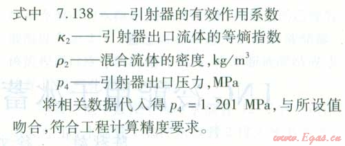 引射氣體、被引射氣體及混合流體組成的計(jì)算是基于引射壓力為20.0 MPa,引射器出Vl壓力為1.2 MPa的情況下所得到的流體的組成,此處則驗(yàn)算此三種組成的物性參數(shù)是否能使引射器出口壓力為1.2 MPa,采用絕熱壓縮(或膨脹)計(jì)算方程。