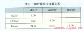 國(guó)際上常用的計(jì)量體積單位有m3、scf等;計(jì)量溫度單位有℃、℉、K等;計(jì)量壓力單位有psi、Pa、bar、Atm等;計(jì)量能量單位有J、kWh、Btu、kcaI等[4]。各單位之問(wèn)的換算關(guān)系如表5所示。