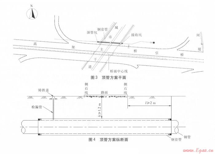 由表l可知,水平定向鉆方案造價較高,但工期較短;頂管方案造價較低,但由于頂管坑需要養(yǎng)護(hù)期,其工期較長。因此,在實(shí)際工程中,應(yīng)綜合考慮工程的客觀情況選擇最佳方案,即對于工期緊張的工程,應(yīng)優(yōu)先選擇水平定向鉆方案,而對于降低造價要求較高的情況,則優(yōu)先選擇頂管方案。