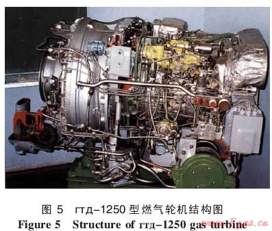 гтд-1250型燃氣輪機的外形與結構分別見圖4和圖5。該機為簡單循環(huán)燃氣輪機,低壓壓氣機與高壓壓氣機均為單級離心式,燃燒室為回流環(huán)形,高壓渦輪、低壓渦輪與動力渦輪均為單級軸流式。