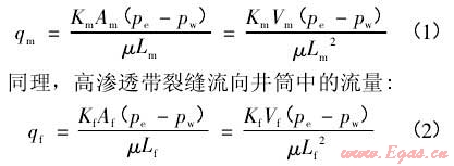 高滲透帶基質(zhì)流向井筒中的流量,由達(dá)西定律: