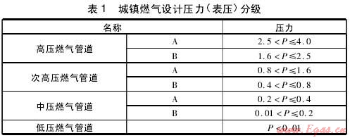 城鎮(zhèn)燃?xì)夤艿缐毫Ψ旨?jí)及地下燃?xì)夤艿琅c建筑物、構(gòu)筑物或相鄰管道之間水平凈距分別見表1,表2。