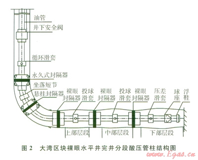 1)一次管柱多級(jí)卡封、逐級(jí)投球打開各層滑套改造儲(chǔ)層的水平井分段完井方式可用于類似大灣區(qū)塊高壓、高產(chǎn)、高酸性天然氣井的完井投產(chǎn)。