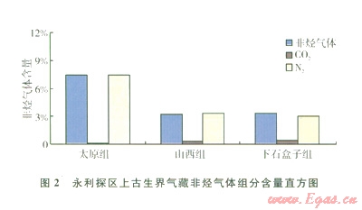 另外一種比較常見的非烴氣體為二氧化碳,其含量均較低,絕大部分樣品的二氧化碳含量小于l%(表1、圖2)。統(tǒng)計(jì)結(jié)果顯示,縱向上天然氣中C02含量白下而上呈現(xiàn)出升高的趨勢(shì),其變化具有一定的規(guī)律性,可能反映了天然氣自下向上的垂向運(yùn)移。
