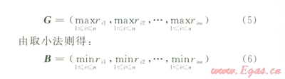 2)對矩陣R,確定出儲層單項指標最佳值,即求出相應向量G與B,由取大法則得:
