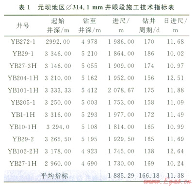 截至2013年4月,除YB27-2井外,中國石化西南油氣分公司在元壩地區(qū)部署的產(chǎn)能建設井均完成第三次開鉆。從表1中可以看出,采用推薦的技術集成應用后,無論是鉆井周期還是日進尺均優(yōu)于前期施工井。ll口井第三次開鉆平均鉆井時間166.18d,較前期平均值縮短34d。