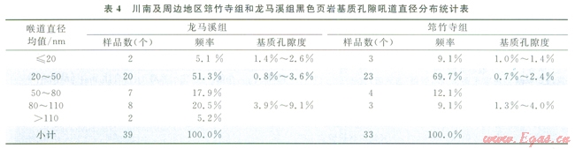 2.2 筇竹寺組成巖作用強(qiáng),頁(yè)巖孔隙直徑整體變小,進(jìn)而導(dǎo)致基質(zhì)孔隙度降低
