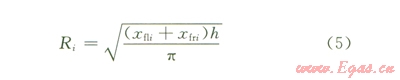 根據(jù)面積相等(xfli+xfri)h=Ri2,可得: