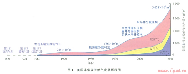 非常規(guī)油氣已成為國(guó)內(nèi)外油氣行業(yè)研究和關(guān)注的熱點(diǎn),中國(guó)石油評(píng)選的“2011年國(guó)際石油十大科技進(jìn)展”中,其中有4項(xiàng)內(nèi)容與非常規(guī)油氣勘探開發(fā)直接相關(guān):①儲(chǔ)層物性納米級(jí)實(shí)驗(yàn)分析技術(shù)投入應(yīng)用,改變了傳統(tǒng)的儲(chǔ)層孑L喉結(jié)構(gòu)表征方法,建立了非常規(guī)儲(chǔ)層性質(zhì)有效評(píng)價(jià)體系,大大拓展了全球油氣勘探領(lǐng)域;②致密油開發(fā)關(guān)鍵技術(shù)突破實(shí)現(xiàn)工業(yè)化生產(chǎn)應(yīng)用,使美國(guó)致密油開發(fā)取得突破,將引領(lǐng)和帶動(dòng)全球致密油勘探開發(fā)進(jìn)程;③綜合地球物理方案提高非常規(guī)油氣勘探開發(fā)效益;④水平井鉆井技術(shù)創(chuàng)新推動(dòng)頁(yè)巖氣大規(guī)模開發(fā)[2]。