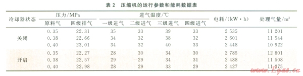 3)如果能夠通過技術(shù)改造,在不增加循環(huán)水量的前提下,進一步改善冷卻器的冷卻效果、提高各級分離器分離效率,降低壓縮機各級進氣溫度和各級氣體的含液率,對提高壓縮機效率、降低壓縮機能耗、實現(xiàn)壓縮機節(jié)能經(jīng)濟運行具有重要的意義。