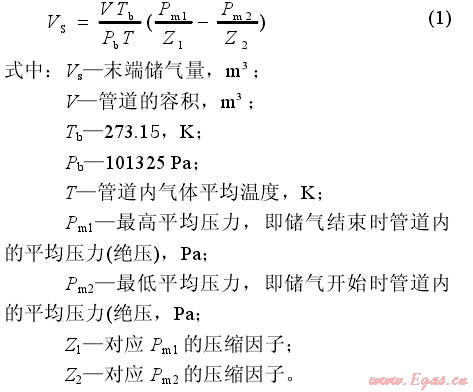 利用高壓、次高壓供氣管道末端儲(chǔ)氣可根據(jù)公式(1)計(jì)算: